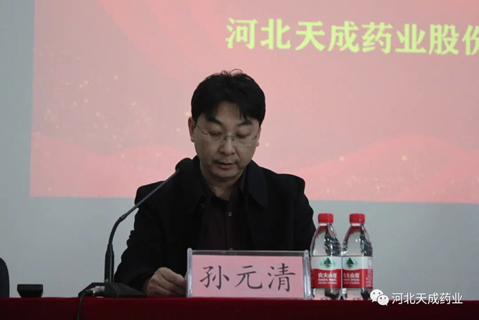 天成藥業(yè)總經(jīng)理兼渤海分公司總經(jīng)理孫元清宣讀《2022年度先進個人賀先進集體評選結(jié)果》