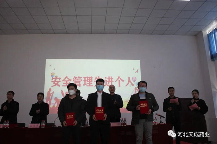 天成藥業(yè)常務(wù)副總經(jīng)理王琦宣讀《對生產(chǎn)復(fù)方對乙酰氨基酚片表現(xiàn)突出人員表彰決定》