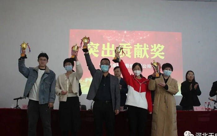 在過去的一年里,天成人團結(jié)一心,攻堅克難,成功度過了兩次新冠疫情的襲擊,天成人不僅收獲了經(jīng)營業(yè)績的增長,更收獲了清醒與自信。正是有了全體天成人的堅持與付出,全體干部員工獻計獻策、團結(jié)拼搏,終于取得今天的成就!董事會領(lǐng)導(dǎo)們?yōu)樵u選出來的先進集體和先進個人進行頒獎。
