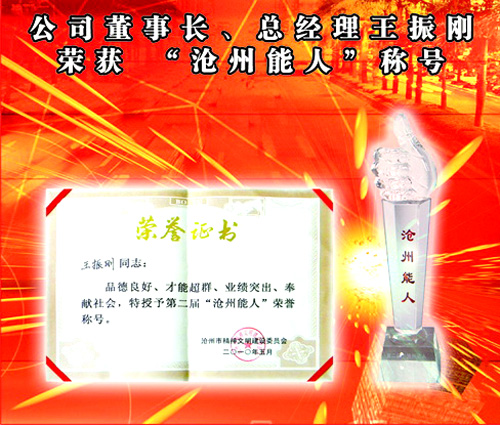 公司董事長、總經(jīng)理王振剛榮獲 “滄州能人”稱號