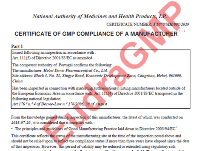河北道恩藥業(yè)獲得無(wú)菌注射劑生產(chǎn)線歐盟GMP證書