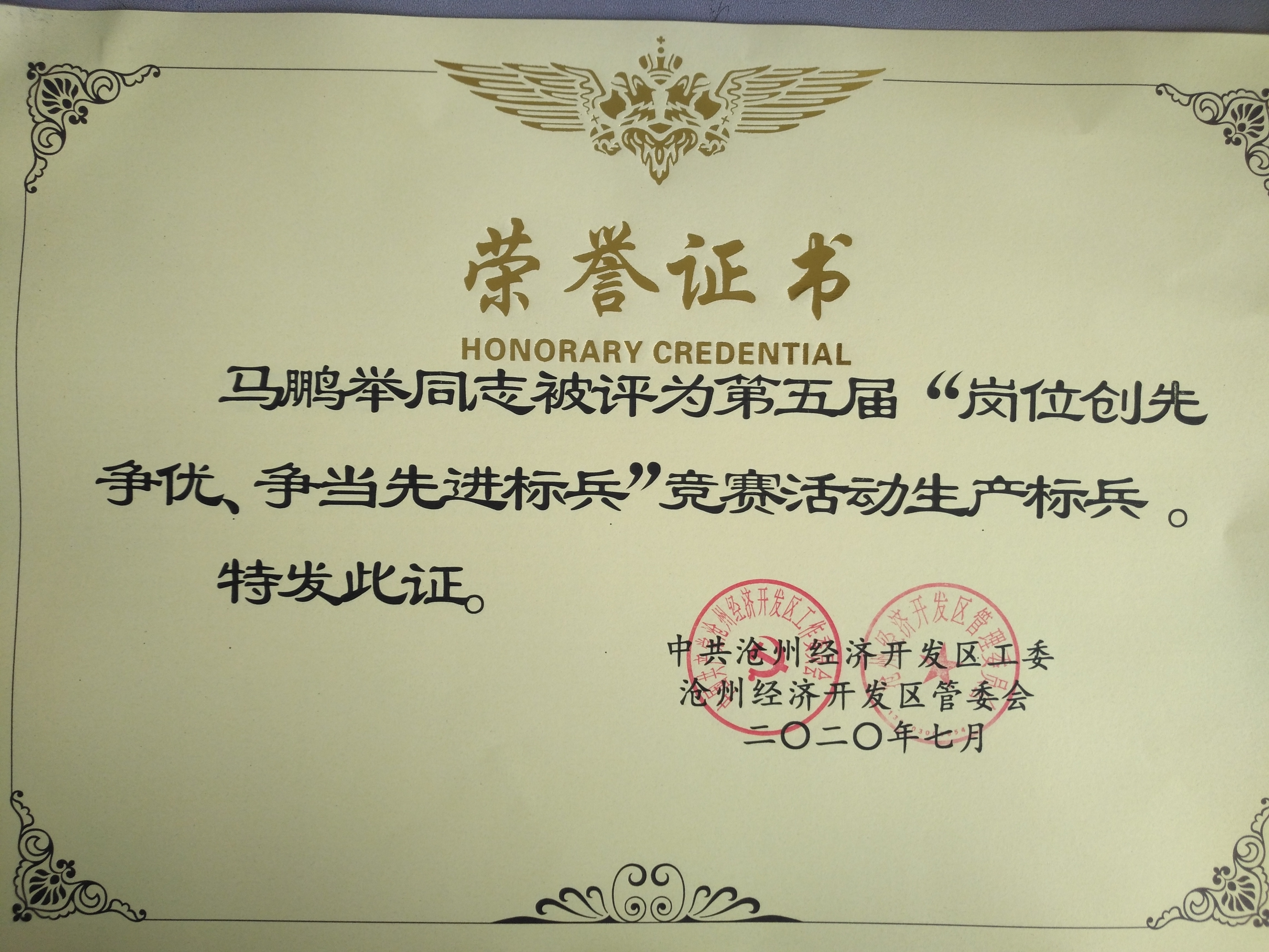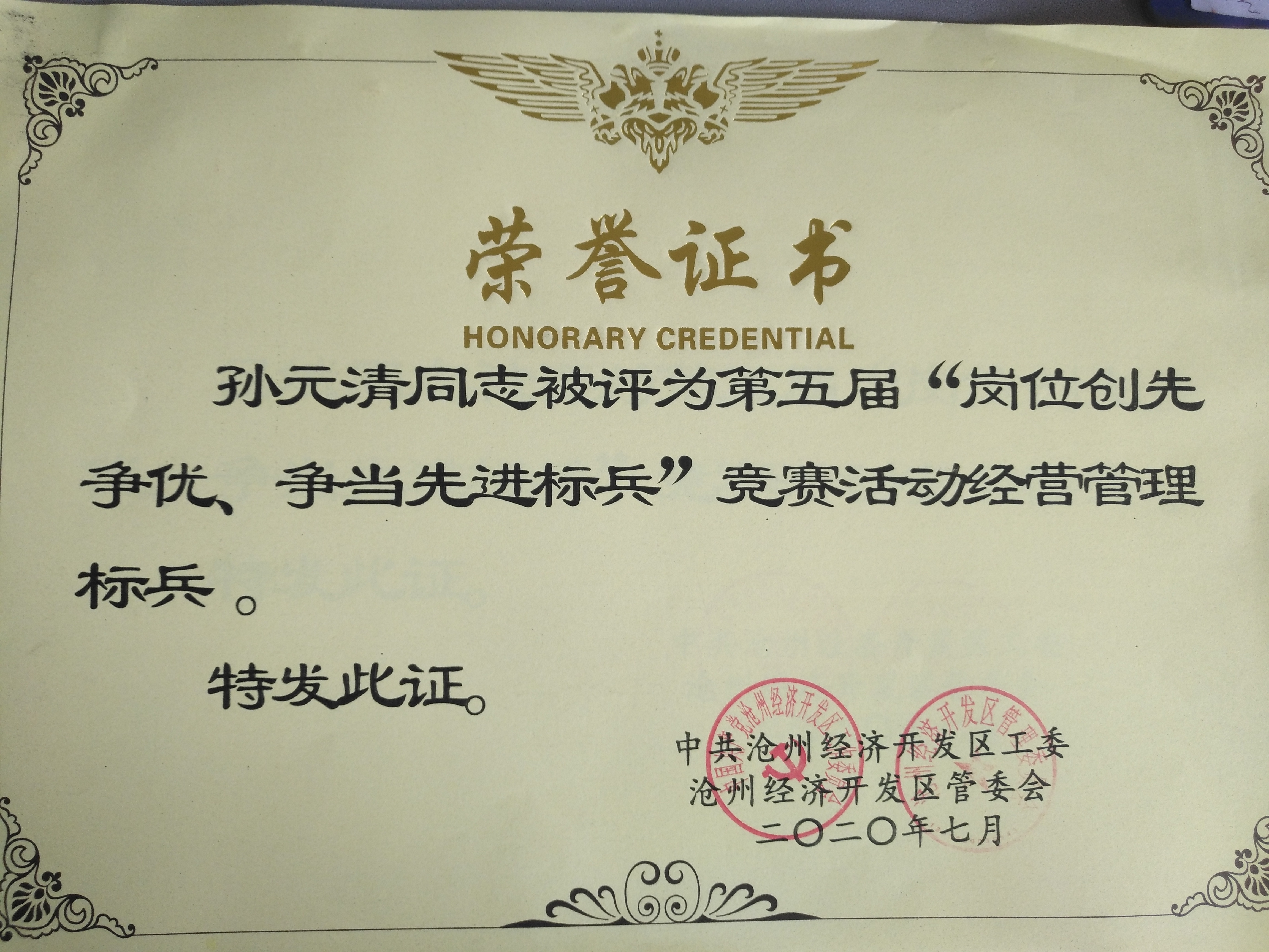 近日,滄州開發(fā)區(qū)企業(yè)委員會開展第五屆“崗位創(chuàng)先爭優(yōu)、爭當(dāng)先進(jìn)標(biāo)兵”競賽活動,公司總經(jīng)理孫元清被授予經(jīng)營管理標(biāo)兵、綜合部部長呂斌被授予安全標(biāo)兵榮譽稱號、設(shè)備部部長劉植梅被授予技術(shù)創(chuàng)新標(biāo)兵榮譽稱號、原料藥車間馬鵬舉、輸液二車間丁傳彥被授予生產(chǎn)標(biāo)兵榮譽稱號。此次評選表彰工作圍繞提高管理水平、保證安全生產(chǎn)、增加經(jīng)濟(jì)效益、促進(jìn)技術(shù)進(jìn)步,以創(chuàng)一流管理、創(chuàng)優(yōu)秀團(tuán)隊、創(chuàng)最佳效益為目標(biāo),立足崗位創(chuàng)先爭優(yōu),開展?fàn)幃?dāng)標(biāo)兵競賽,引導(dǎo)全體黨員和全體員工以昂揚向上的精神風(fēng)貌、更加出色的工作業(yè)績,體現(xiàn)黨組織戰(zhàn)斗力,展示黨員和先進(jìn)員工風(fēng)采,倡導(dǎo)塑造企業(yè)先進(jìn)文化,帶領(lǐng)廣大群眾為企業(yè)和諧快速發(fā)展多做貢獻(xiàn)。