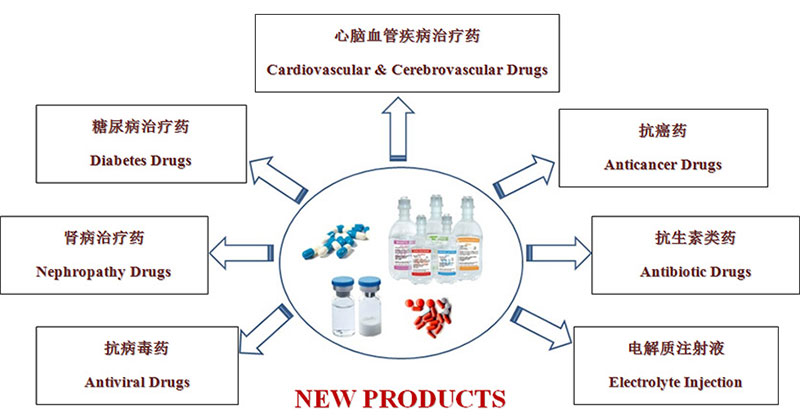 公司可生產大容量注射劑、小容量注射劑、片劑、顆粒劑、膠囊劑、粉針劑、凍干粉針劑、沖洗液、原料藥(含部分中藥提取物)等八大劑型200多個品規的產品。我公司以大容量注射劑和小容量注射劑為主,做專業的注射劑藥品生產商。大容量注射液產品齊全,多種包裝形式并存,在PP瓶、軟袋、玻璃瓶輸液的基礎上,向雙室袋、多室袋等先進的輸液包裝形式發展。小容量注射劑在玻璃安瓿的基礎上,大力發展塑瓶(PP和PE)安瓿及西林瓶小水針劑。積極謀求高端GMP認證,由內銷為主向內銷與出口并重轉變。